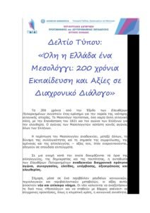 1ο ΔΕΛΤΙΟ ΤΥΠΟΥ_Όλη η Ελλάδα ένα Μεσολόγγι_200 χρόνια Εκπαίδευση και Αξίες σε Διαχρονικό Διάλογο adminkpe02/04/2026